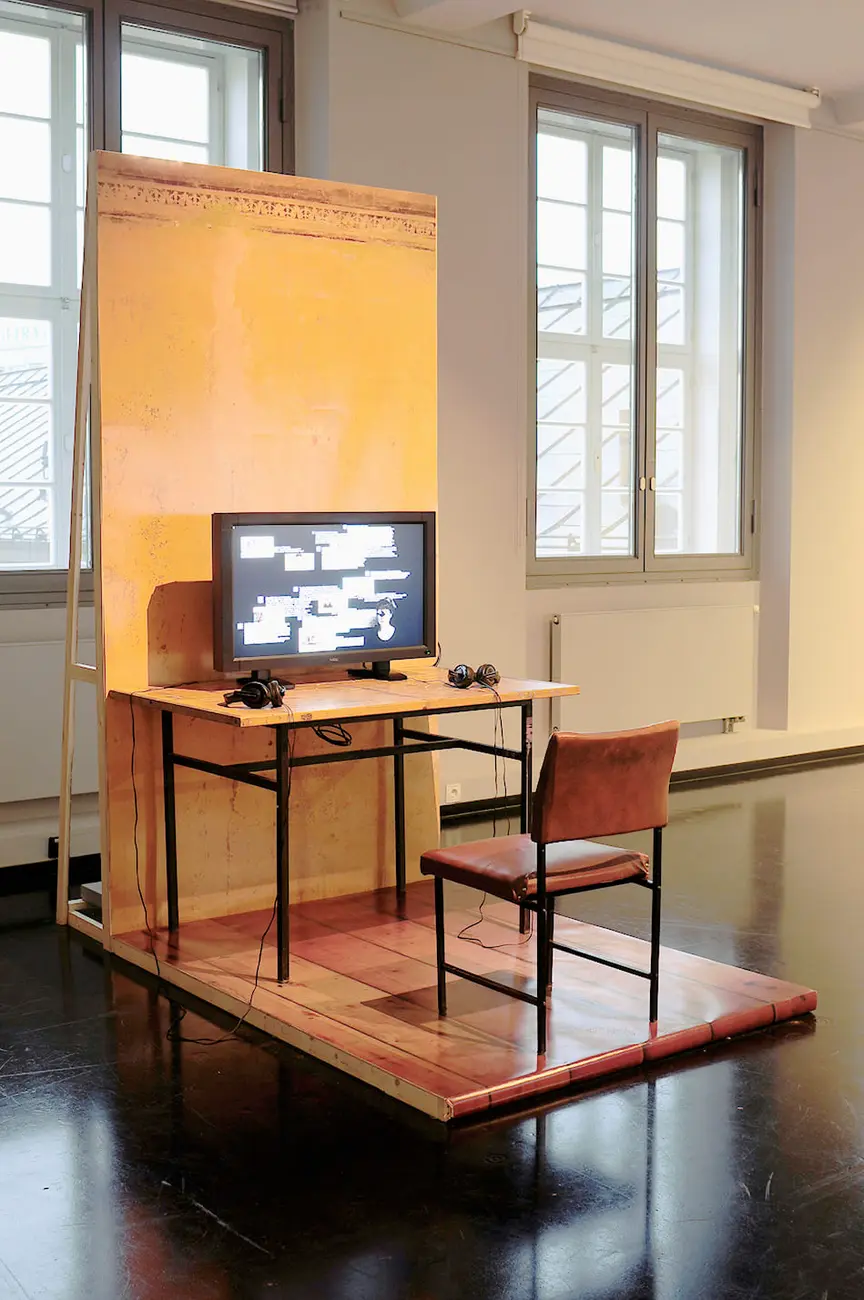 Video, Monitor, Fototapete, Tisch, Stuhl