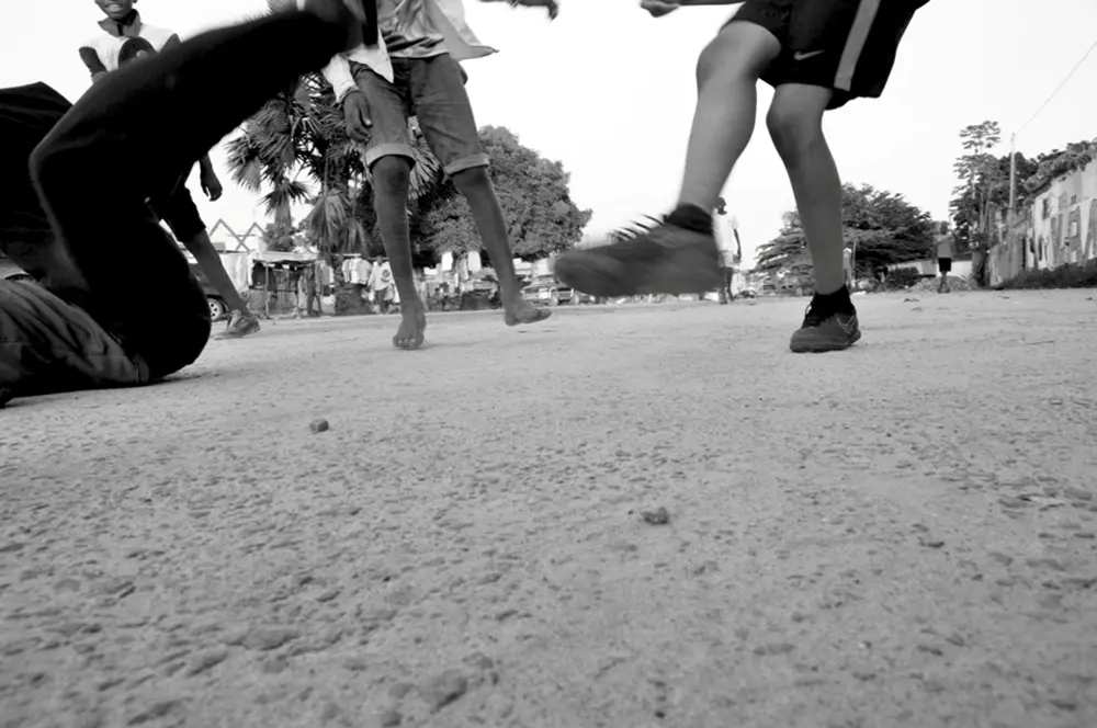 Elie Mbansing (*1992 im Westkongo, Provinz Bandudnu) begeisterte sich nach seinem Abitur im Maschinenbau für die Fotografie. Mbansing hat eine Vorliebe für die Schwarzweißfotografie, deren neutrale Ausstrahlung seine innere Haltung zu seiner Umwelt wiedergibt. Teamarbeit ist eine seiner Stärken, weshalb er 2012 das Kollektiv TOSALA CINEMA gründet, welches junge kongolesische Künstler*innen und Filmemacher*innen verschiedener Disziplinen vereint. Er arbeitet für zahlreiche Kunstfestivals als Dokumentarfilmer, wie kürzlich beim KINACT-Festival im Juli 2018 in Kinshasa. Mithilfe seiner Fotografien verewigt er Szenen aus dem Alltagsleben der Hauptstadt: Kinder, die in den Seitengassen Fußball spielen, abgenutzte Wagons auf dem Hauptbahnhof oder Performancekünstler*innen auf den Straßen Kinshasas.