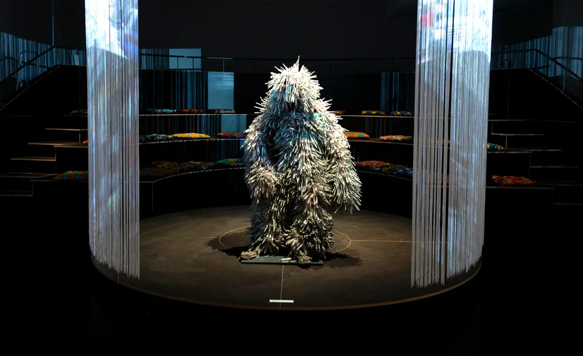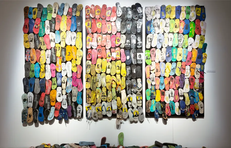 Flory Sinanduku (*24. Juli 1983) machte 2015 seinen Abschluss in Grafik am Institut Supérieur Technique Académie des Beaux-Arts in Kinshasa. Er nahm mehrmals am Festival KINACT teil und arbeitete in verschiedenen Firmen als Grafikdesigner und Computergrafiker. In seinem Werk „Traces“ („Spuren“) verwendet er gebrauchte Flip-Flops, die vorwiegend von den Ärmsten der Gesellschaft getragen werden. Sie bilden eine Straße und repräsentieren die Stadt Kinshasa sowie die Seelen der Opfer von Ausbeutung, Kriegen, der Ressourcenjagd und der Umweltzerstörung. Wie Sinanduku sagt, hindert der Hunger die Einwohner Kinshasas nicht daran sich heraus zu putzen, die „Sapologie“ zu praktizieren, zu tanzen und Motorräder zu fahren. Die sogenannte „Sapologie“ verkörpert eine auffällige, elegante Kleidungsweise, die zugleich einen Lebensstil darstellt, der im Kongo entstanden und durch Künstler wie Papa Wemba popularisiert wurde. „Die Schönheit Kinshasas wird in die Hände der kongolesischen Künstler zurückkehren“ betont Sinanduku.