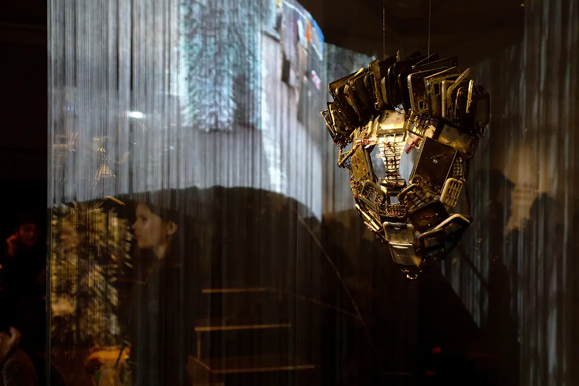 Nada Tshibwabwa (*1990 in Lubumbashi) ist ein multidisziplinärer Künstler, der sowohl in der bildenden Kunst, als auch als Musiker tätig ist. Auch wenn er sich thematisch nicht beschränken lässt, besteht ein wichtiger Teil seiner künstlerischen Arbeit darin, auf langen und kontinuierlichen Spaziergängen Material für seine Werke zu sammeln. Für Nada Tshibwabwa werden diese Gegenstände zum Rohstoff für Performance-Kostüme, Roboter, Masken und vieles mehr. Diese Arbeiten spiegeln implizit die mit der eigenen Biographie verwobene Gewalt heutiger Machtverhältnisse wider, hinterfragen die Möglichkeit gesellschaftlichen Gleichgewichtes, aktivieren Beziehungszyklen zwischen Mensch und Natur und weben ein kommunikatives Netz zwischen Vergangenheiten und der Gegenwart. Aufgewachsen in Lubumbashi und Kananga, zieht Nada Tshibwabwa nach dem frühzeitigen Tod seiner Eltern nach Kinshasa. Dort entwickelt er seine künstlerischen und musikalischen Fähigkeiten als Autodidakt weiter und sucht die Nähe unterschiedlicher Handwerks- und Künstlergruppierungen. Unter anderem beteiligt er sich an dem Performance-Festival KINACT und ist seit 2018 Teil des von Eddy Ekete und Aude Bertrand gegründeten Künstlerhauses Ndaku Ya La Vie Est Belle.