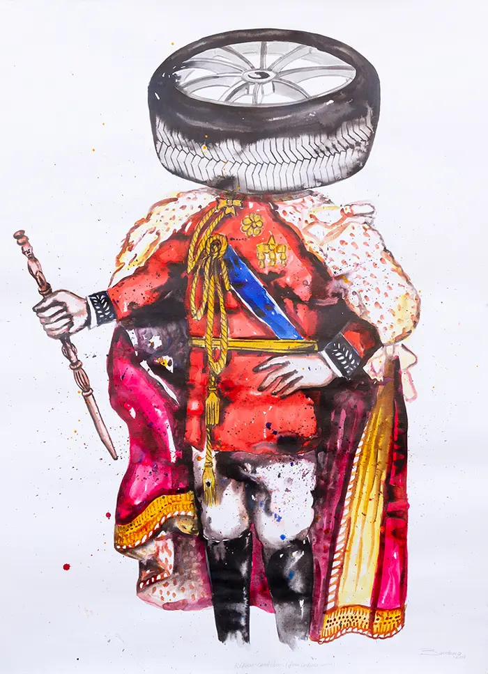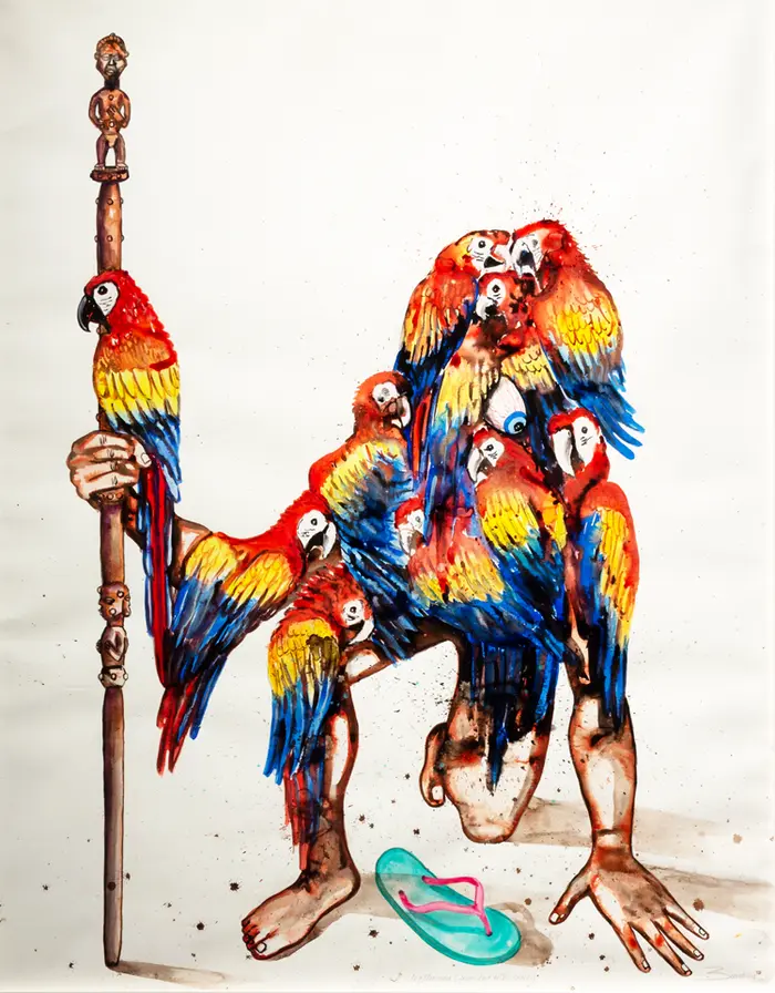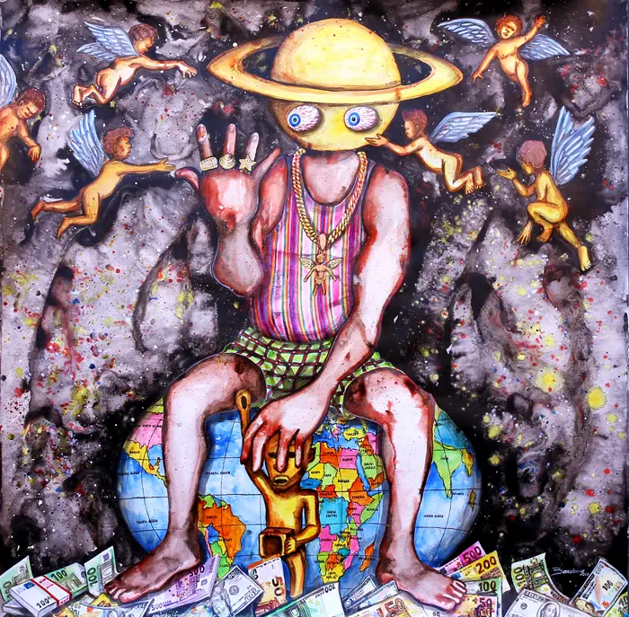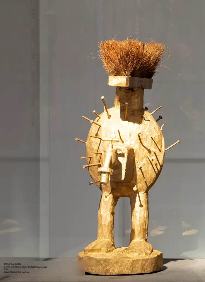 Steve Bandoma (*27. September 1981 in Kinshasa) schloss 2004 seinen Bachelor an der Académie des Beaux Arts in Kinshasa ab. Im Jahr 2005 zog er nach Kapstadt (Südafrika) und ließ sich dort als Multimedia-Künstler ausbilden. Zunächst reiste er 2009 nach Zürich und schließlich nach Paris für eine Künstlerresidenz an der Cité Nationale des Arts. Als Bandoma 2012 nach Kinshasa zurückkehrte, stellte er seine Werke im Centre Wallonie-Bruxelles Kinshasa und Institut Français de Kinshasa aus. Seine Arbeiten thematisieren die koloniale sowie post-koloniale Unterdrückung auf spielerische, oft ironische Art. Seine mit Mischtechniken angefertigten Gemälde haben eine explosionsartige Ästhetik, welche bei näherer Betrachtung jedoch ein Chaos mit System erkennen lassen. Für Bandoma ist jeder Künstler zugleich Politiker. Demzufolge vermitteln seine Werke auf eindrucksvolle Weise dem Zuschauer seine Wahrnehmung der gesellschaftlichen und politischen Realität.