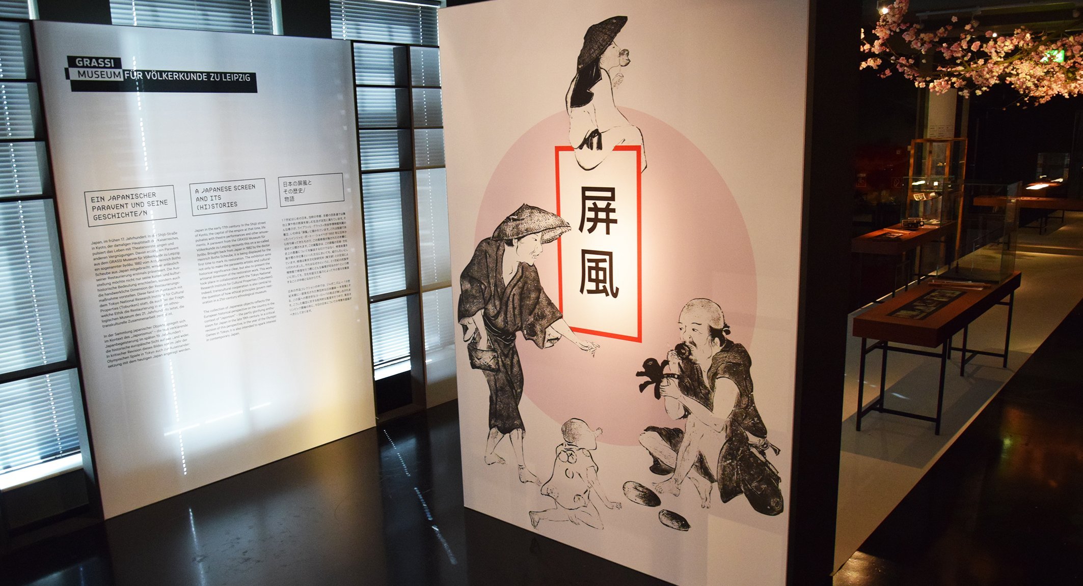 Japan in the early 17th century: In the Shijō street of Kyoto, the capital of the empire at that time, life pulsates with theatre performances and other amusements. A paravent from the GRASSI Museum für Völkerkunde zu Leipzig counts this on a so-called byōbu. Brought back from Japan in 1882 by the doctor Heinrich Botho Scheube, it is being displayed for the first time to mark its restoration. The exhibition aims not only to make the paravents artistic and cultural-historical significance clear, but also to present the artisanal dimension of the conservation work. This work took place in collaboration with the Tokyo National Research Institute for Cultural Properties (Tobunken). Indeed, transcultural cooperation is also central to the question of how ethical principles govern restoration in a 21st-century ethnological museum.