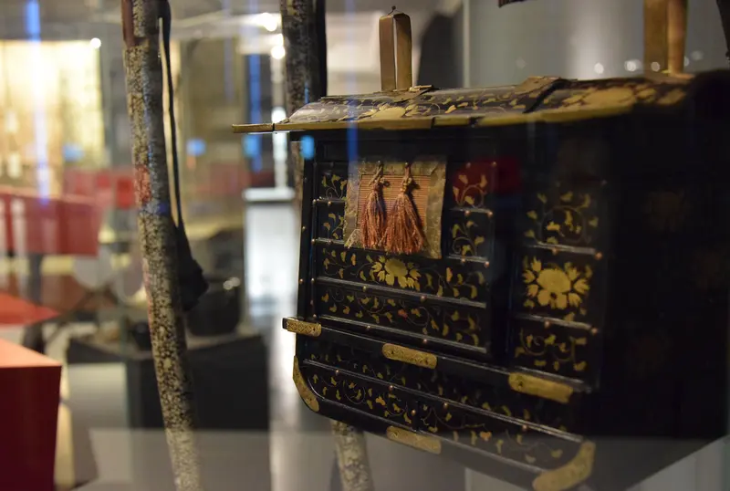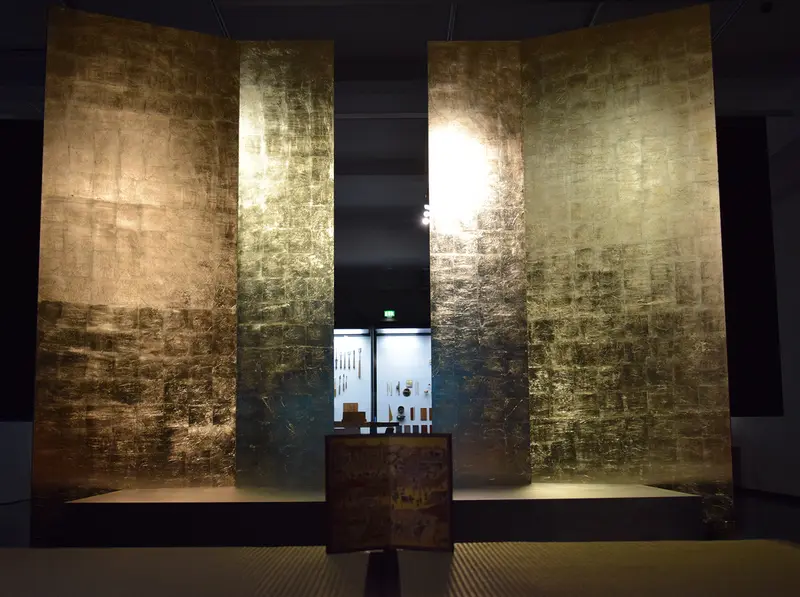 Several of the objects depicted are presented exemplarily in thematic showcases. They invite us to immerse ourselves in the scenes from life depicted on the byōbu.