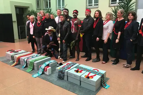 Die SES Decolonize-Plattform zielt darauf ab, unsere Museumsaktivitäten transparenter abzubilden. Dies kann sensibles Material beinhalten, das sich auf Gemeinschaften, Familien und Einzelpersonen auswirken kann. Wir sehen unsere Aufgabe darin, stets angemessen und sensibel mit diesem Material umzugehen, insbesondere wenn es die privaten Hintergründe unserer indigenen Besucher*innen und Kolleg*innen betrifft oder verletzt.